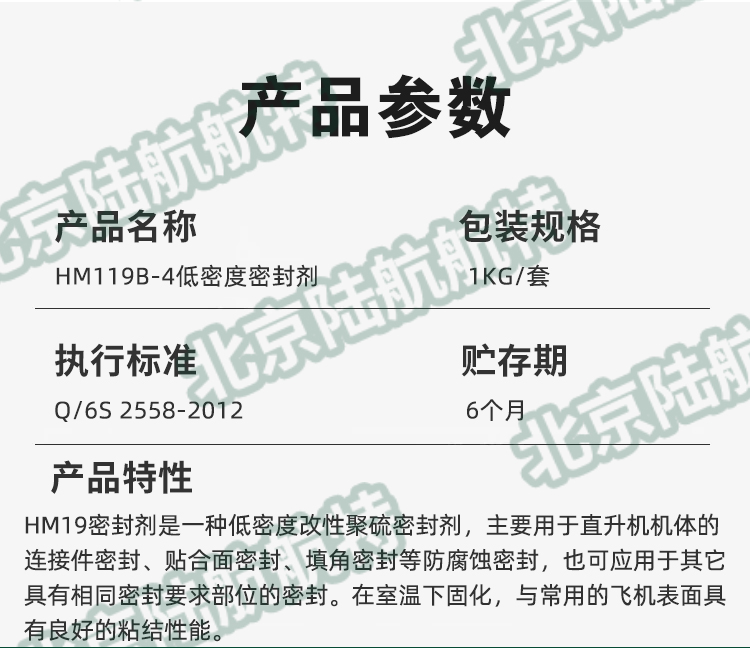 HM119密封剂是一种低密度改性聚硫密封剂,主要用于直升机机体的连接件密封、贴合面密封、填角密封等防腐蚀密封,也可应用于其它具有相同密封要求部位的密封。由于其密度低,可实现机身减重的目的。
